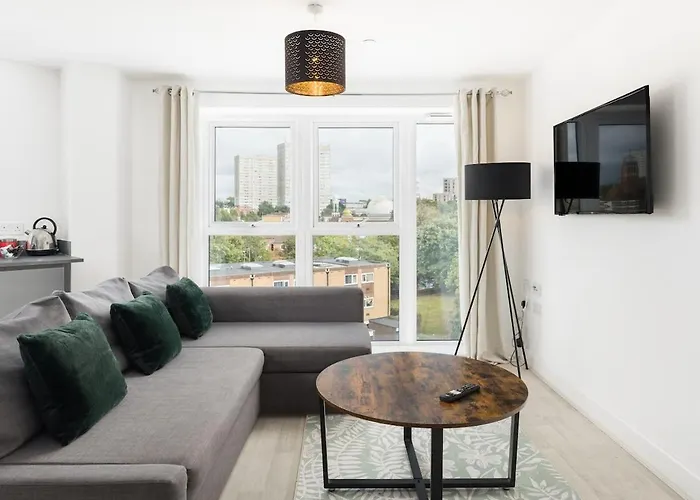 Das 65 m² große Top Floor 2-Bedroom Central Apartment With Secure Parking New Build Birmingham liegt in 20 Gehminuten Entfernung vom Bullring und bietet WLAN für Geschäftsreisende und Urlauber. PST ist etwa 300 Meter von der Unterkunft entfernt, während das Birmingham Museum and Art Gallery ebenfalls gleich neben den Apartments liegt.